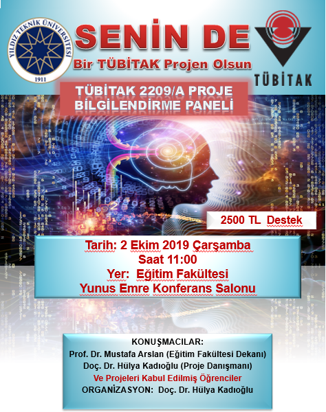 Anabilim dalımız öğretim üyelerinden Doç. Dr. Hülya KADIOĞLU organizatörlüğünde, eğitim fakültesi dekanımız Prof. Dr. Mustafa ARSLAN'ın da konuşmacı olarak yer alacağı TUBİTAK 2209/A proje bilgilendirme paneli 02.09.2019 Çarşamba günü saat 11:00'da Eğitim Fakültesi Yunus Emre Konferans Salonu'nda gerçekleştirilecektir.